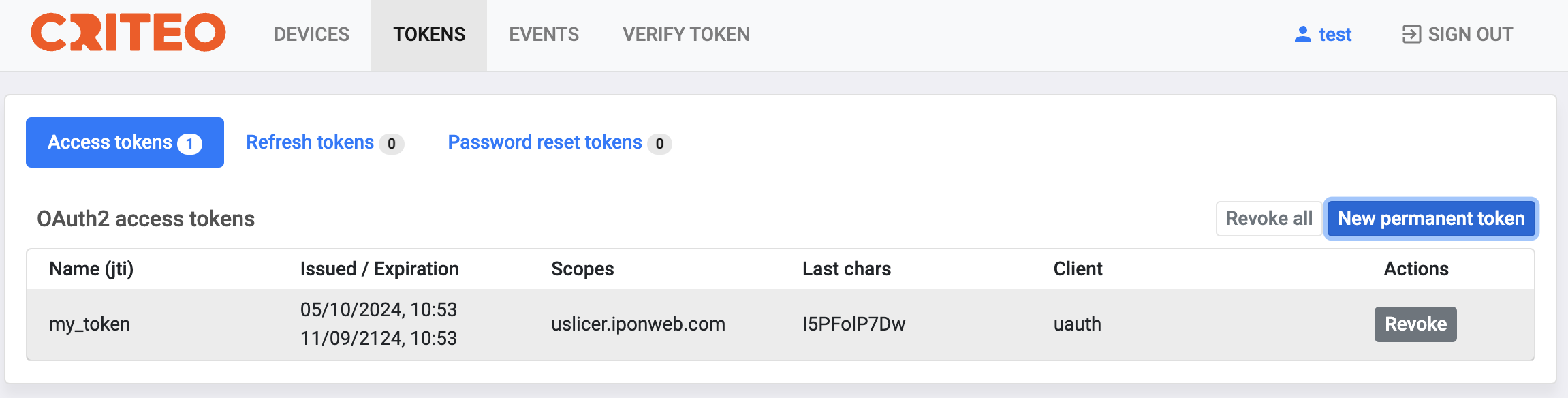 Revoking a permanent access token