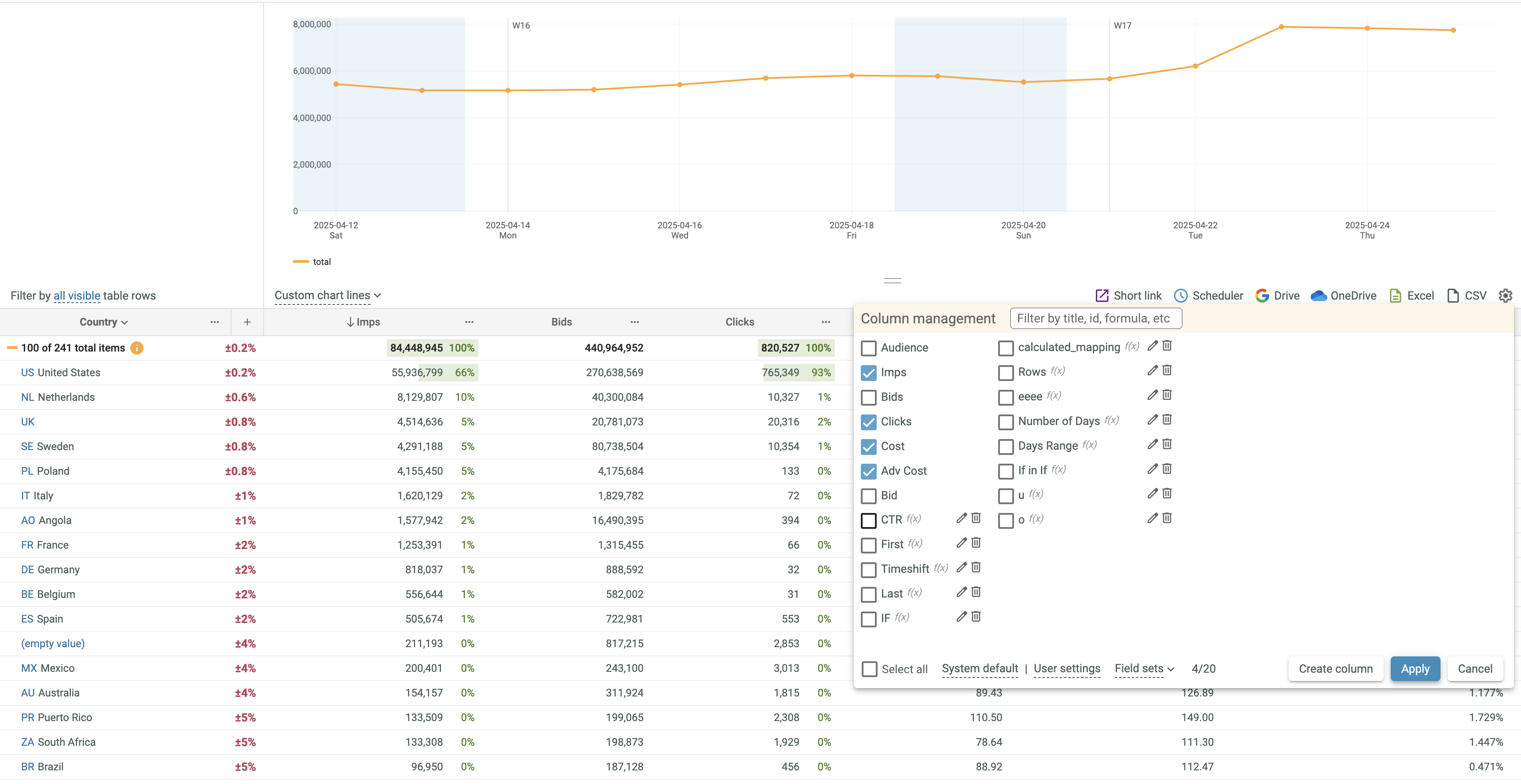 ( Manage Columns) button in the upper right corner of the Data Table and select/deselect columns in the appeared Column management dialog box.