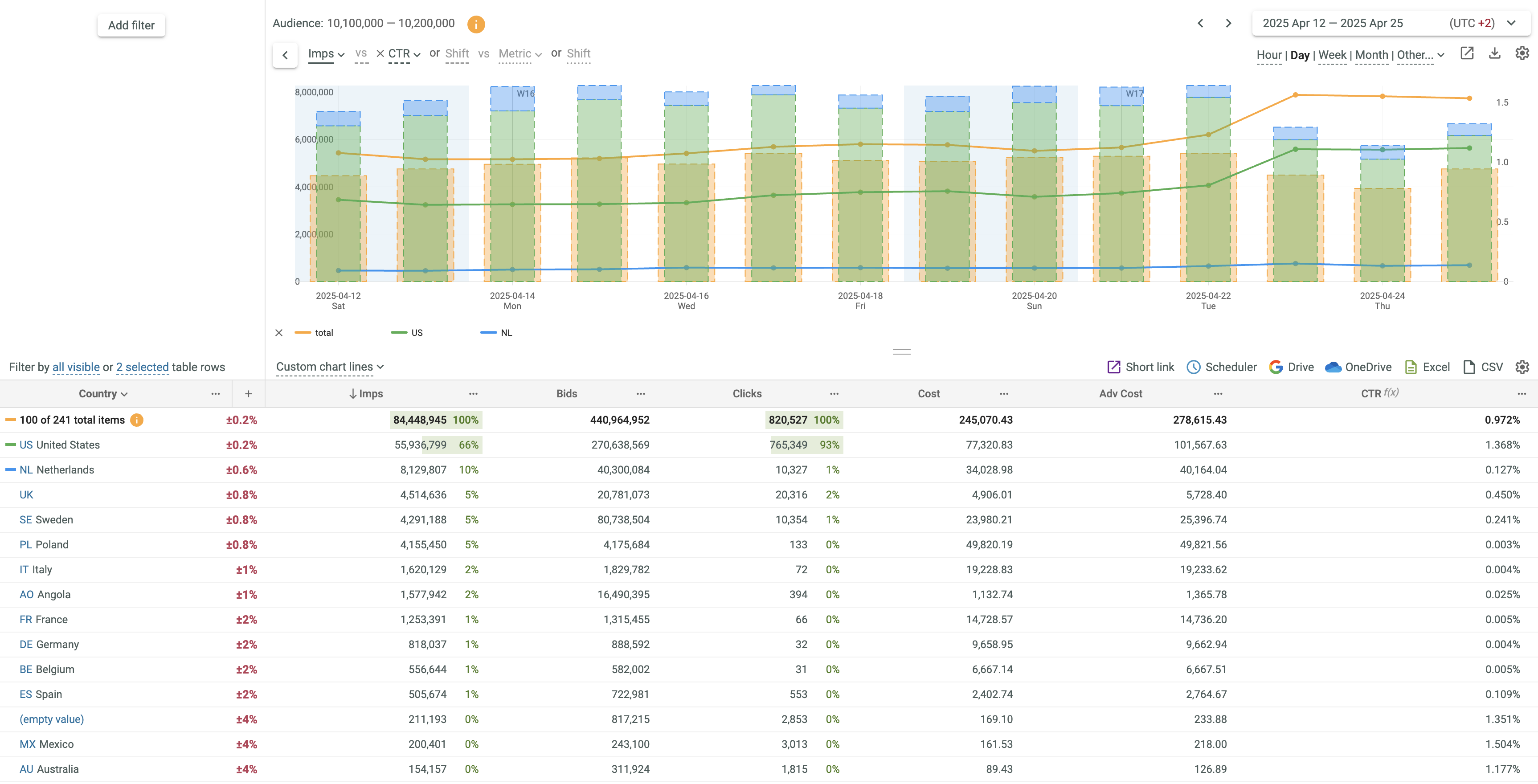 - If 1 metric is selected, all 3 plot types are supported.