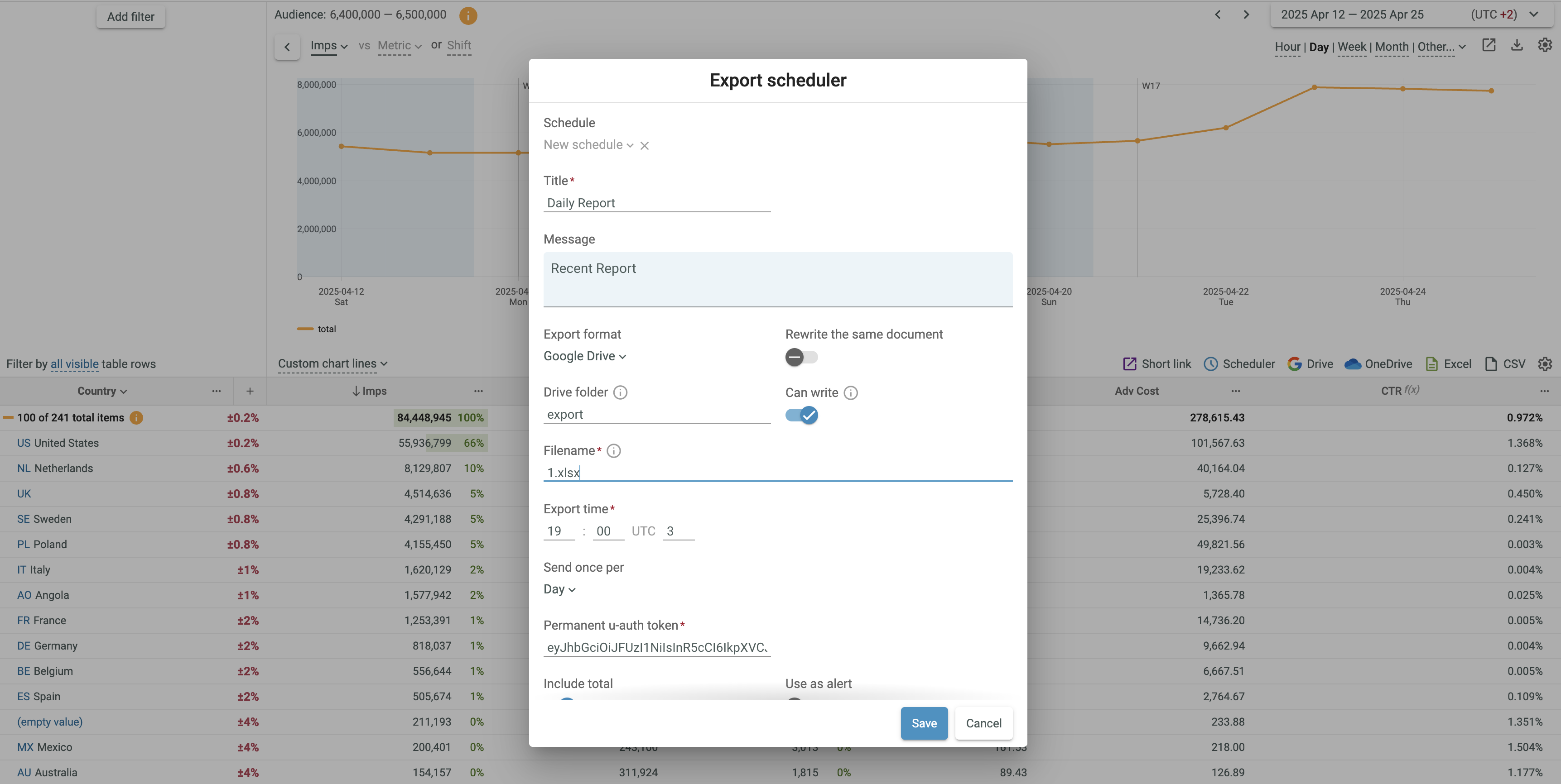 Changing permanent u-Auth token for a scheduled report¶