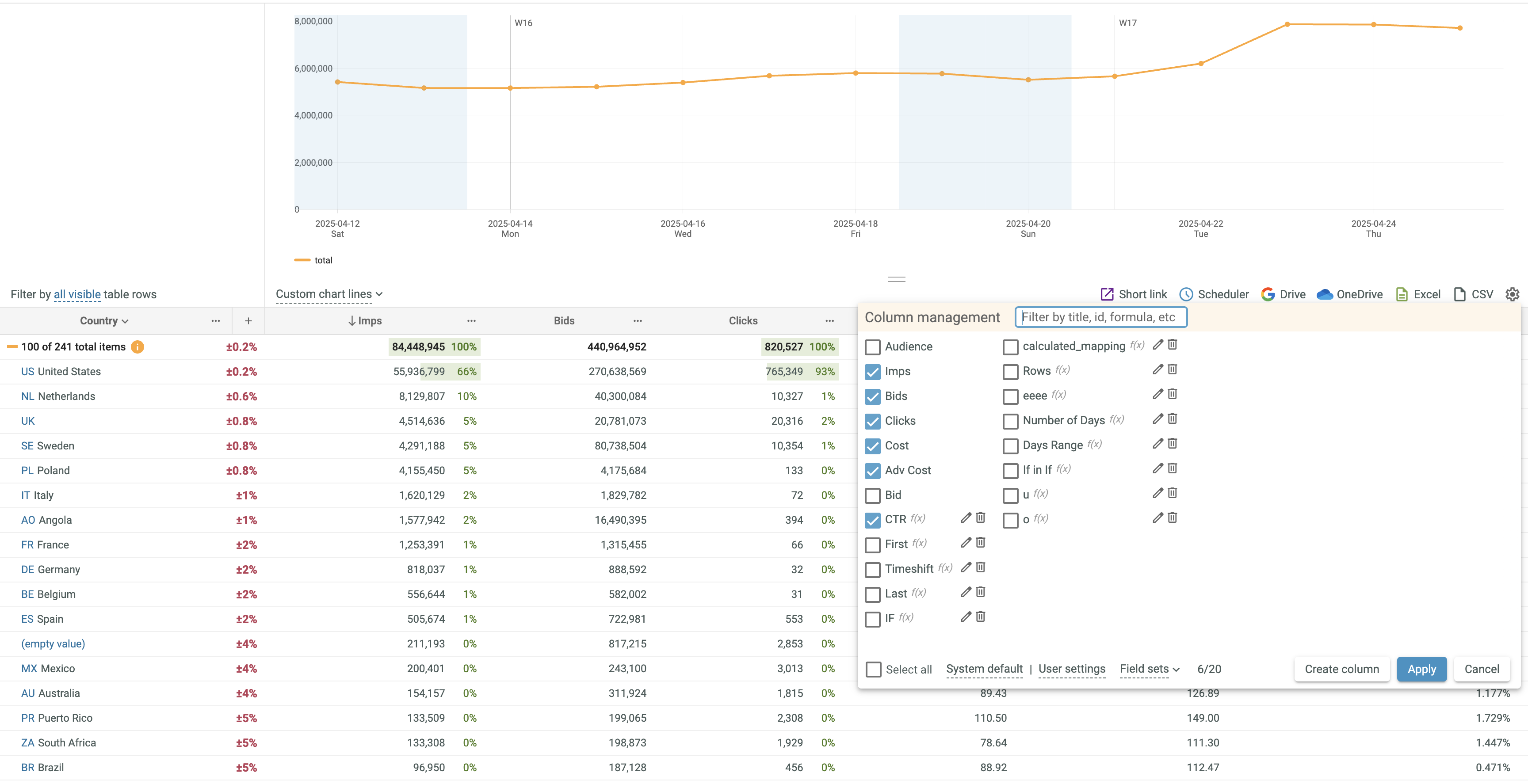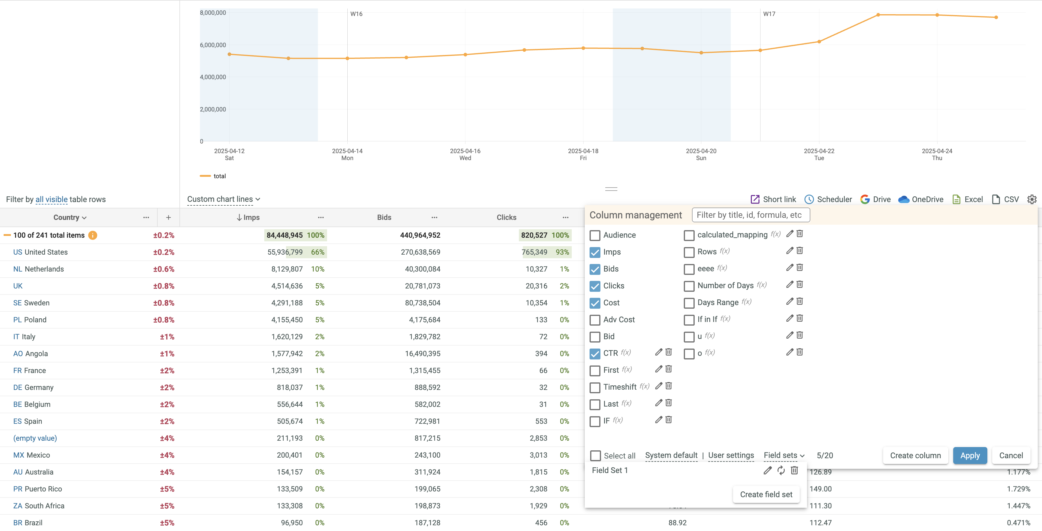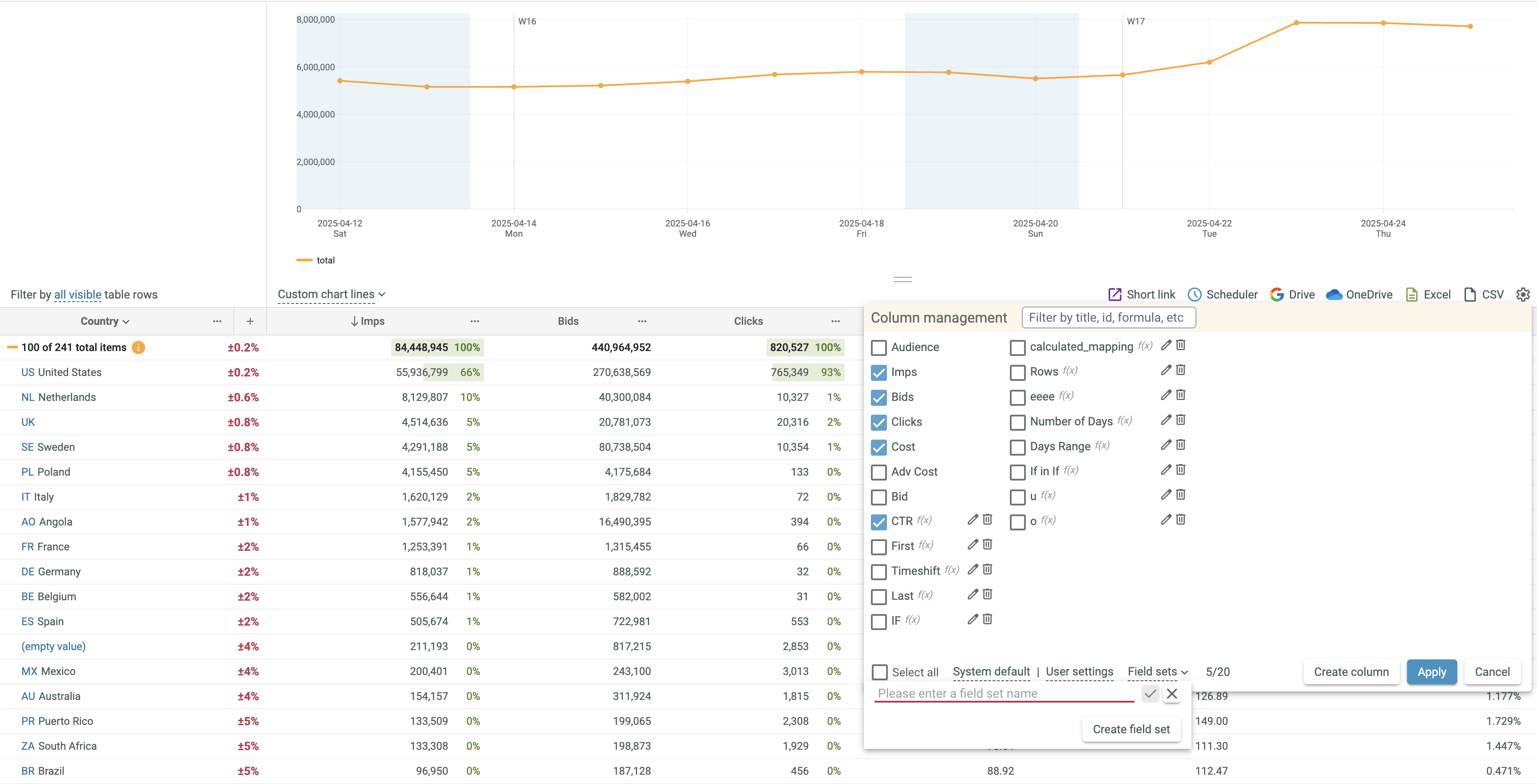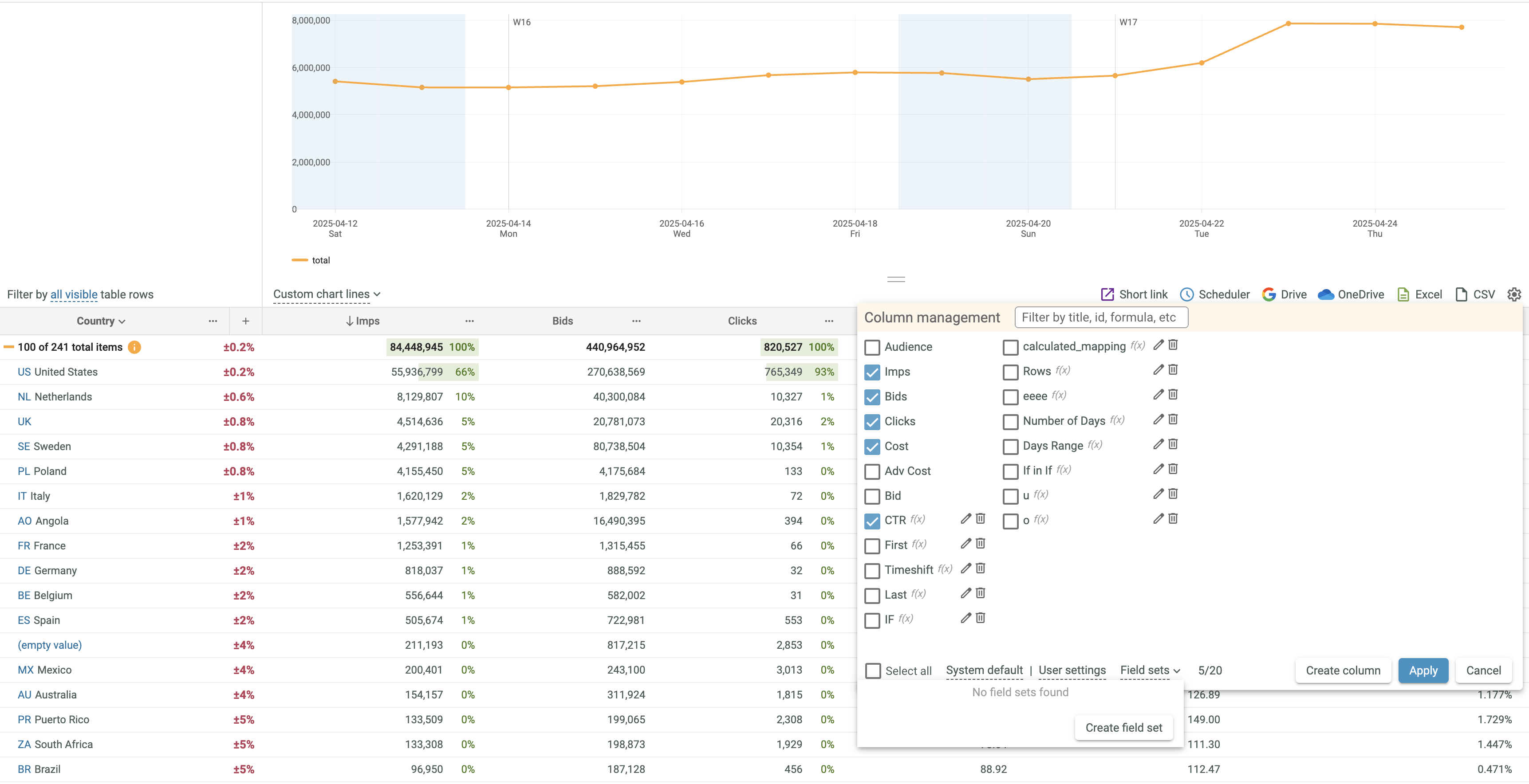 button in the upper right corner of the Data Table to open the Column management dialog box. - Open the Field sets drop-down list.