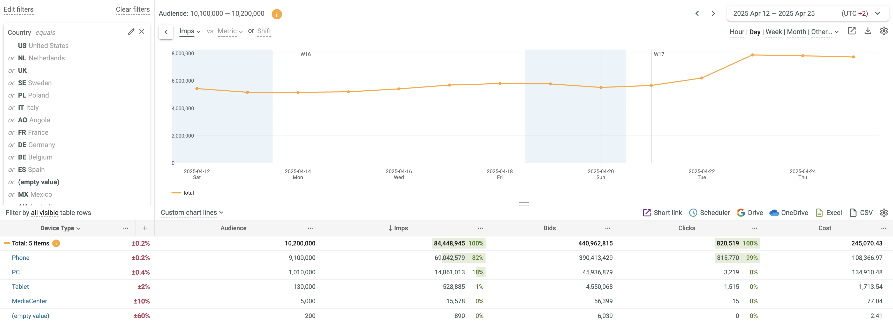 - See that the advanced filter is applied to all visible countries.